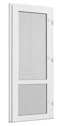 Подойдёт как для установки на балкон, так и для входной двери. Конструкция представляет собой стандартную москитную сетку из стекловолокна, покрытую ПВХ и заключённую в металлическую рамку из алюминиевого профиля.